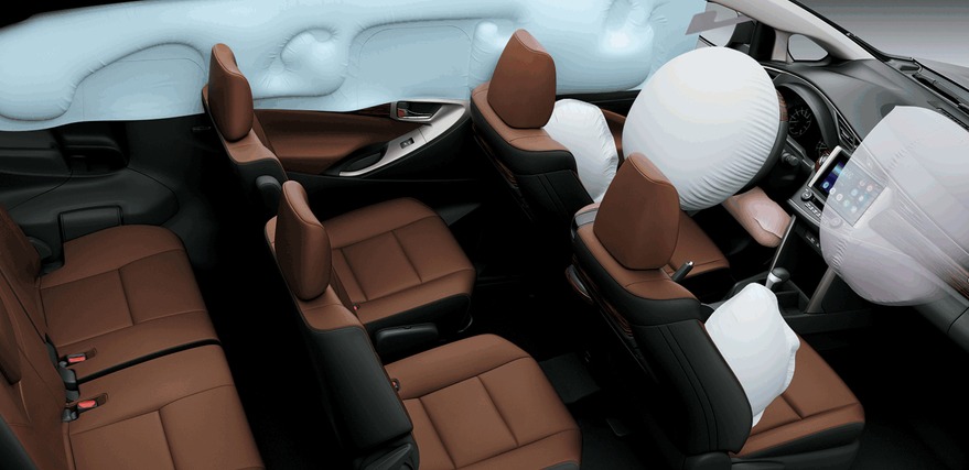 Hệ thống túi khí được tăng cường tối đa tới 7 túi khí không những bảo vệ tuyệt đối hàng ghế người lái, mà còn cho hành khách phía sau trong trường hợp xảy ra va chạm có thể gây nguy hiểm.